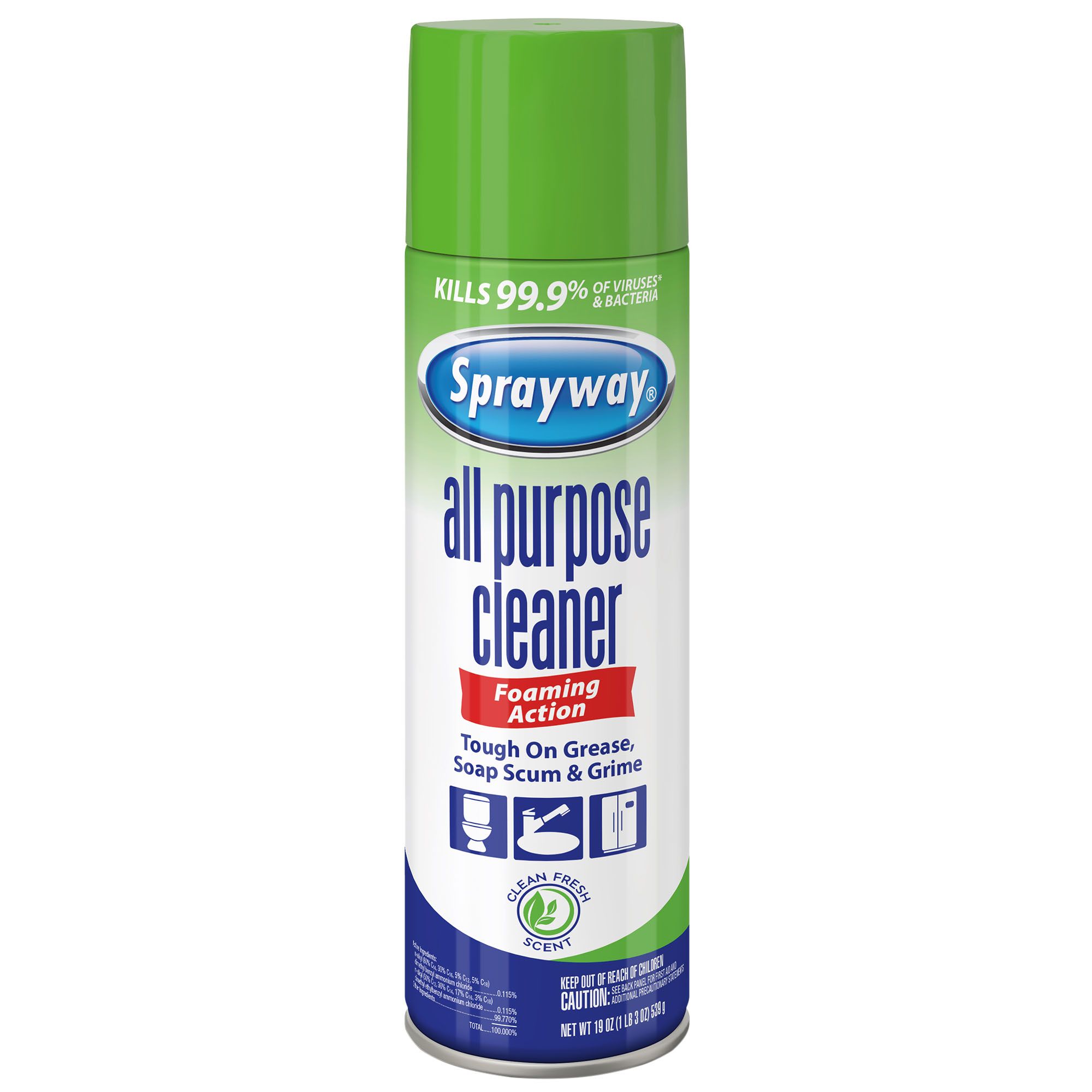Sprayway all purpose cleaner quickly and easily cleans disinfects and deodorizes surfaces all around the home while leaving a fresh clean scent.